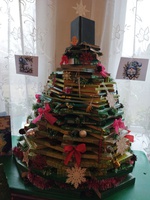 Креативна ялинка з книг створена для святкового настрою юних читачів.
