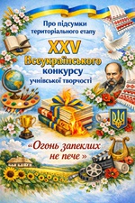 Щиро вітаємо переможців територіального етапу ХХV Всеукраїнського конкурсу учнівської творчості, який проходив під гасломм